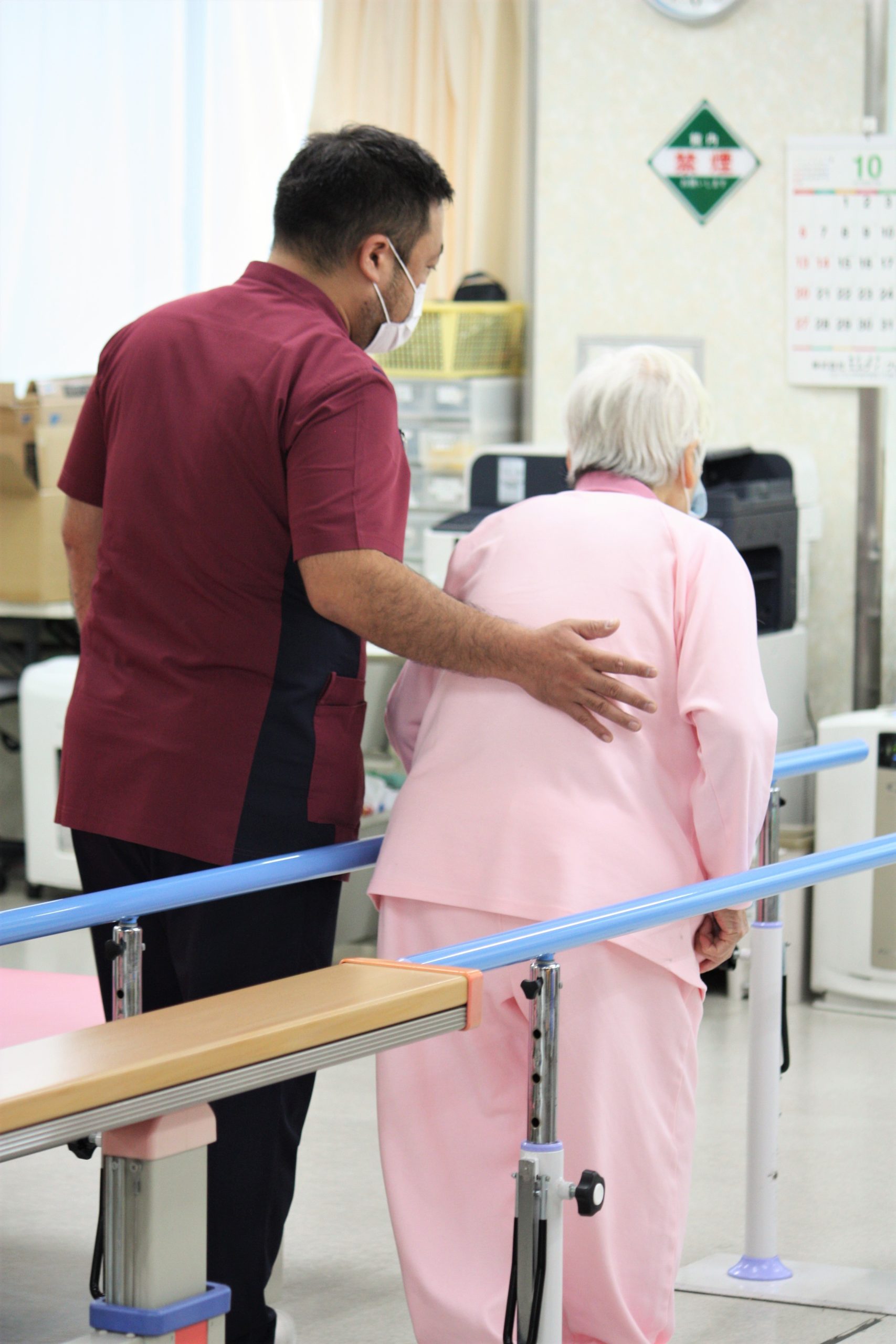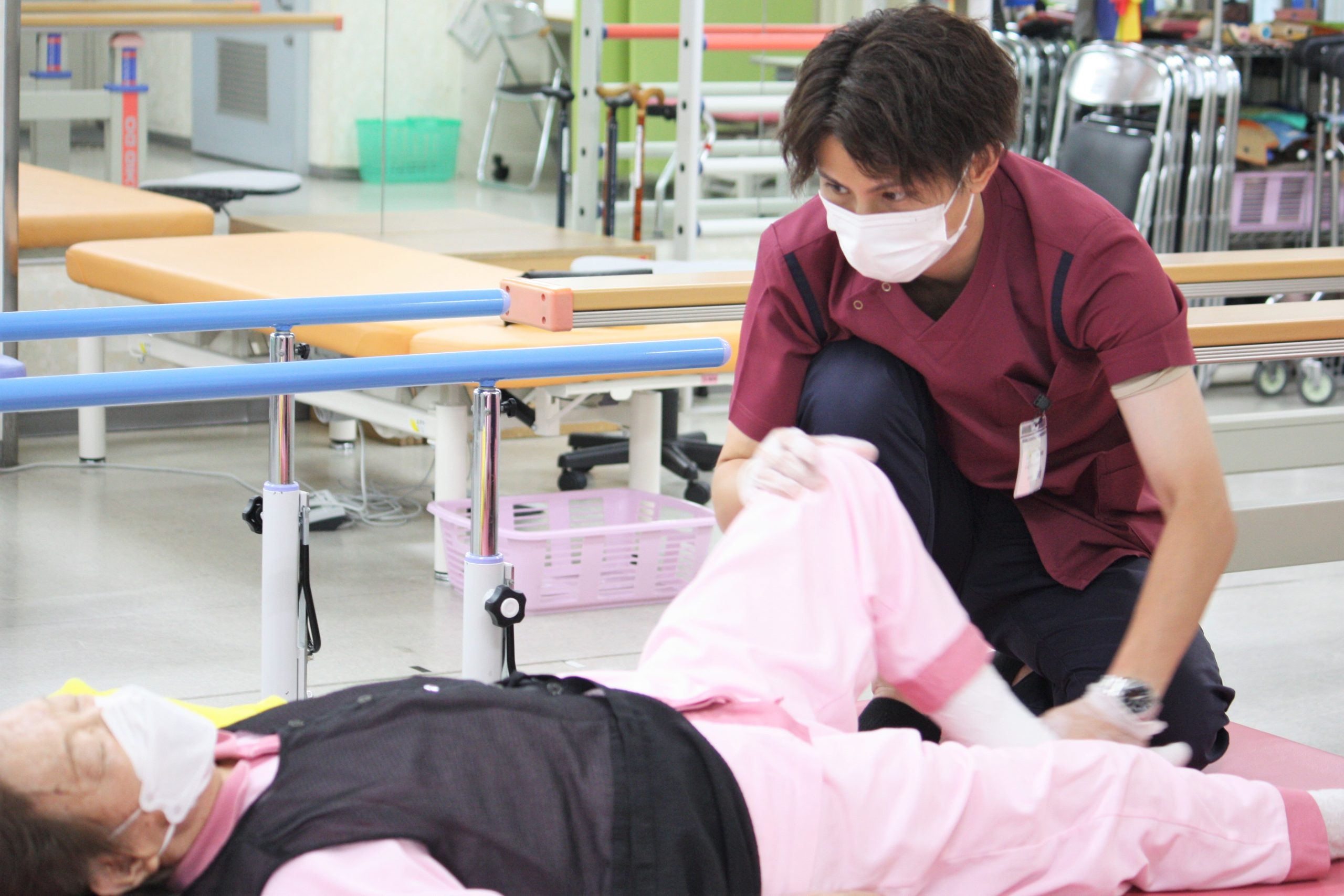 退院後の生活復帰のために必要な歩行・動作練習を可能な限り改善していただき、福祉用具の選定や住宅改修の助言、家族への介助方法の指導も必要に応じて行っております。